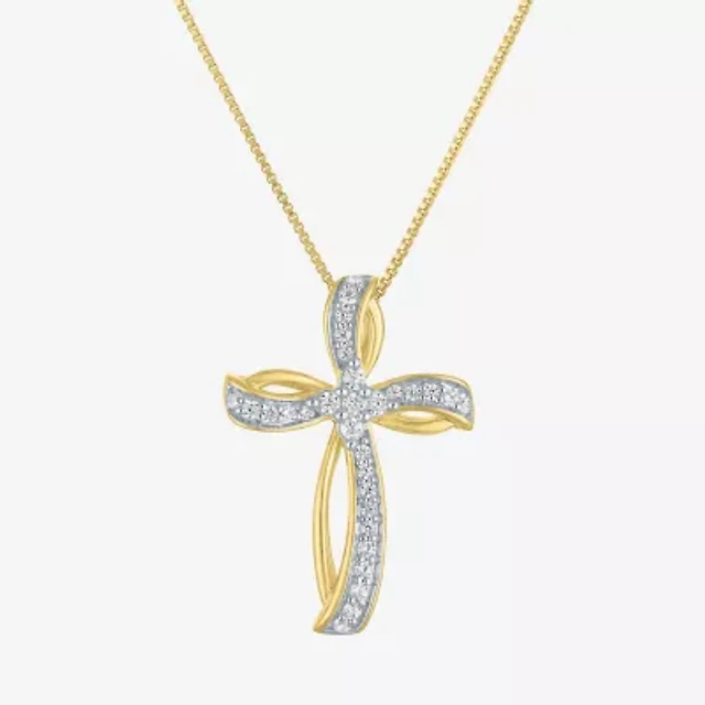 Diamond Cross Necklace 1/4 ct tw 10K Yellow Gold 18"