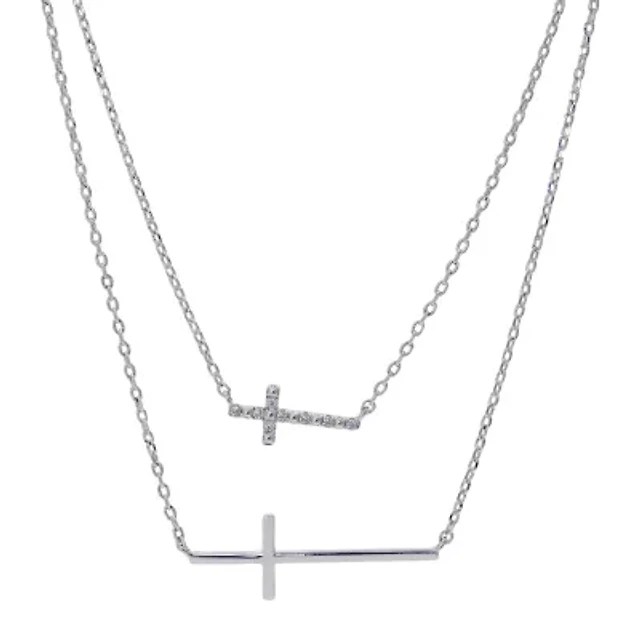 Diamond Cross Choker Necklace 1/20 ct tw 10K White Gold 16.75"