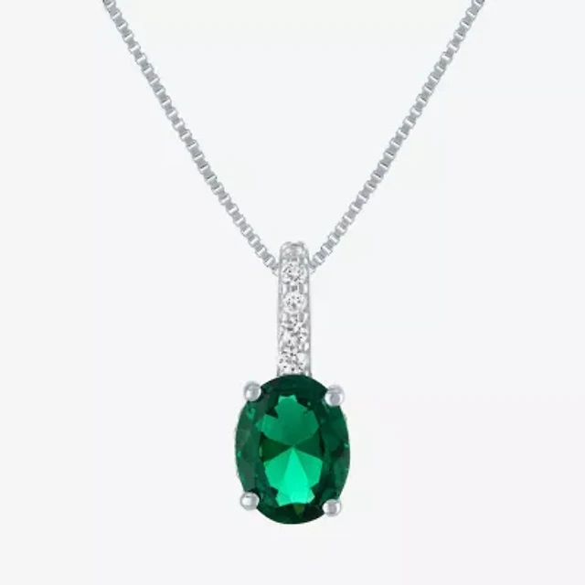 Lab Grown Silver Tone Siam Crystal Pendant with CZ Necklace