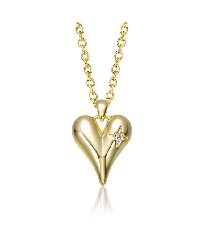 Sterling Silver 14k Gold Plated with Cubic Zirconia Heart Pendant Necklace