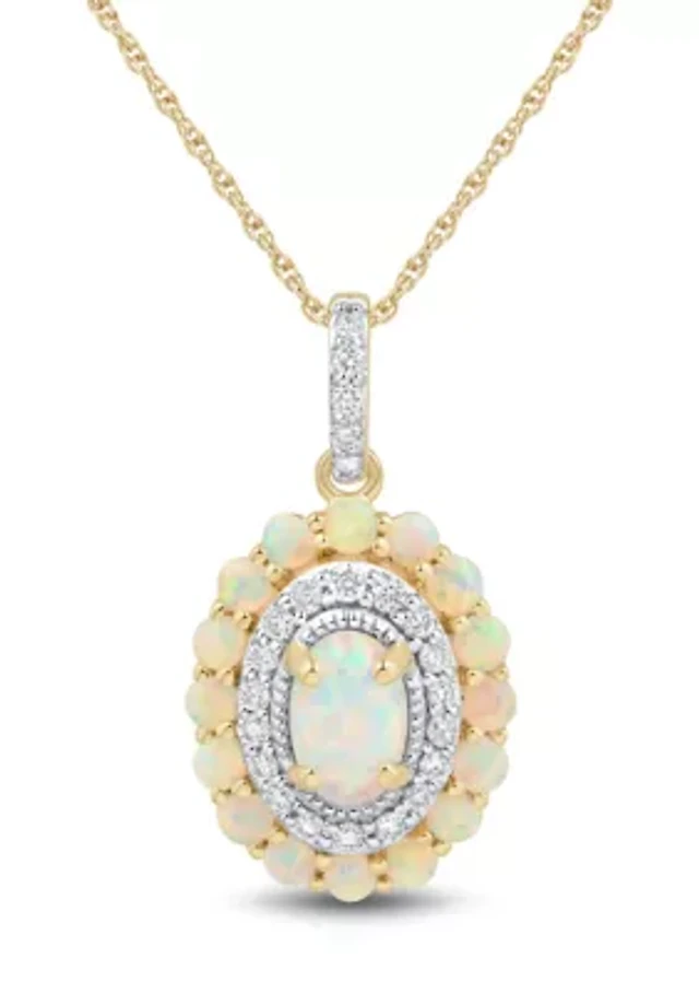 Simulated Opal Dainty Necklace in Semi-Solid Sterling Silver - 16" + 2"