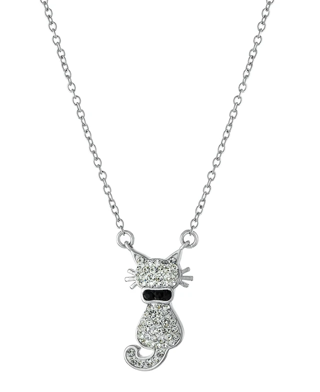 Crystal Cat Pendant 16+2" Extender Chain In Silver Plated