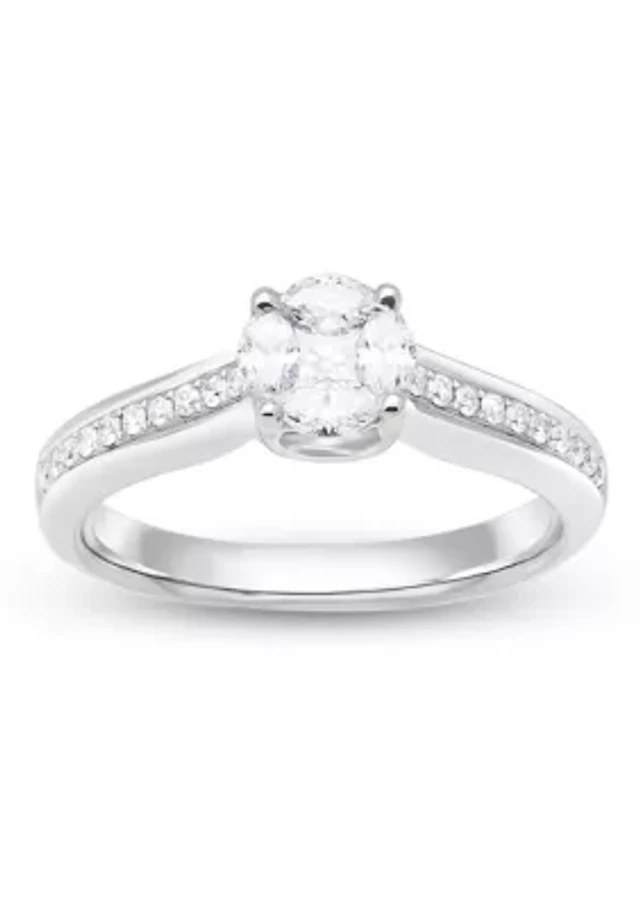 Diamond Cluster Engagement Ring (1/3 ct. t.w.) in 14k White Gold