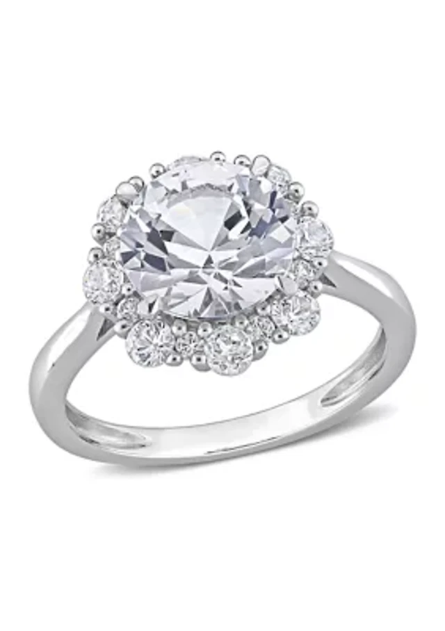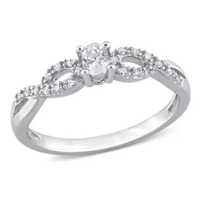 Previously Owned - 6.5mm Lab-Created White Sapphire and 1/2 CT. T.w. Diamond Engagement Ring in 10K White Gold