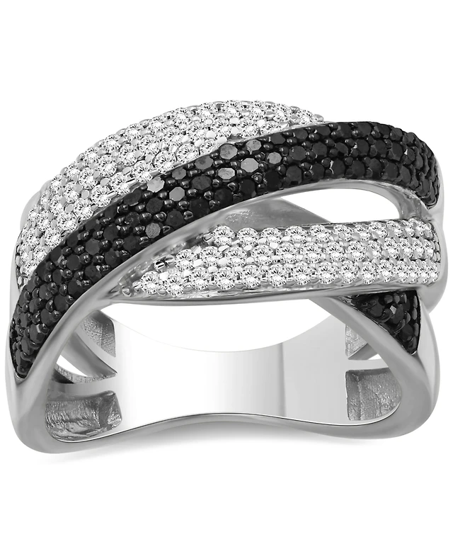 1 ct. t.w. Black and White Diamond Engagement Ring 14K Gold with Rhodium Plated
