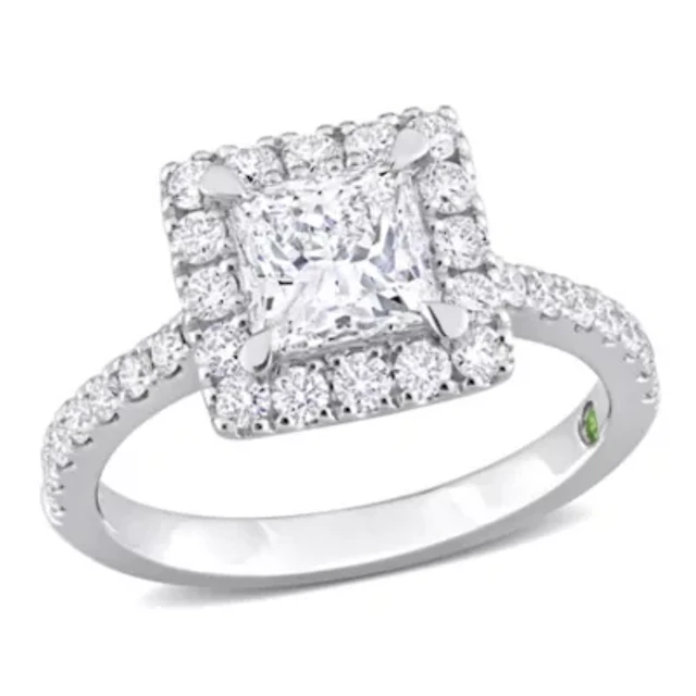 Lab Created 1.54 ct. t.w. Diamond with Tsavorite Accent Halo Engagement Ring 14K White Gold
