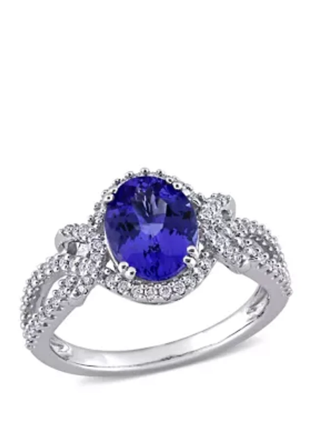 1.8 ct. t.w. Tanzanite and 1/3 Diamond Oval Halo Ring 14k White Gold