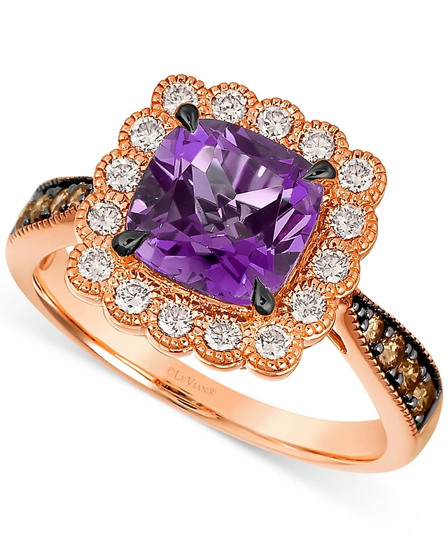 Le Vian Grape Amethyst (2-1/5 ct. t.w.) & Diamond (1/2 ct. t.w.) Halo Ring in 14k Rose Gold