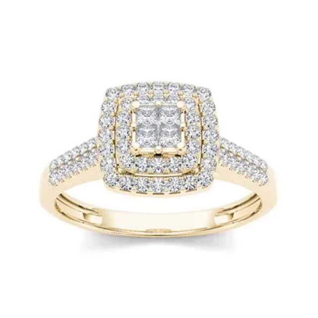 (G / Si1-Si2) Womens 1/2 CT. T.W. Lab Grown White Diamond 10K Gold Side Stone Engagement Ring