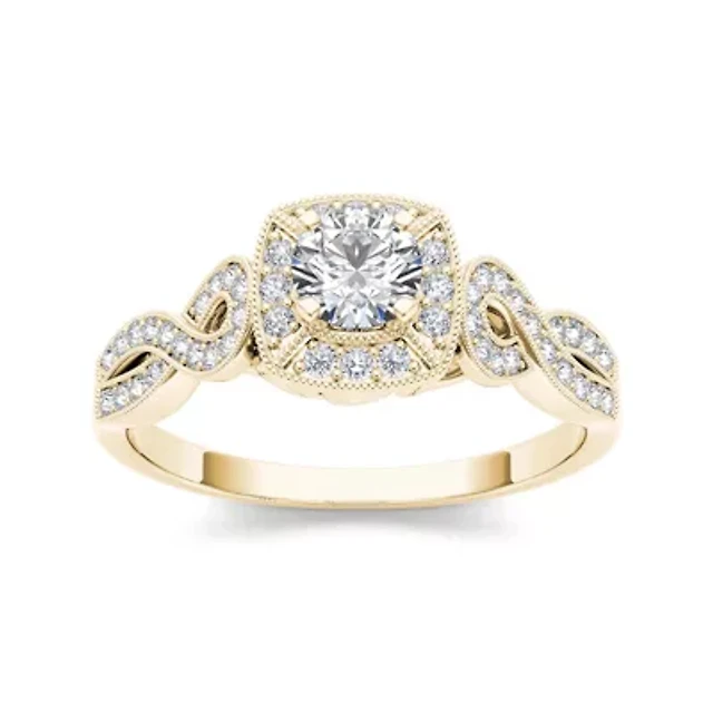 Signature By Modern Bride Womens 1 1/2 CT. T.W. Natural White Diamond 14K Gold Halo Engagement Ring