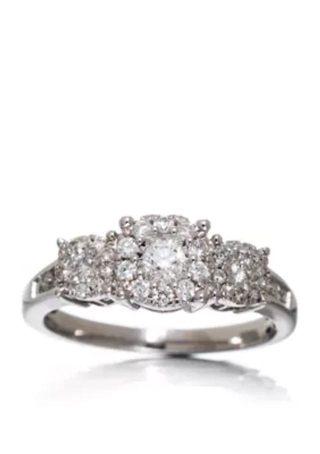 Diamond Quad Halo Cluster Swirl Engagement Ring (3/4 ct. t.w.) in 14k White Gold