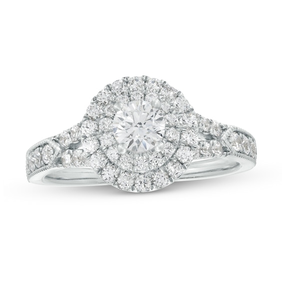 Diamond Double Halo Cluster Engagement Ring (1-1/4 ct. t.w.) in 14k White Gold