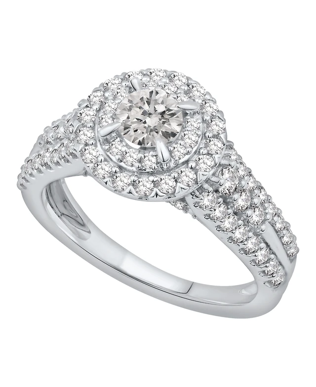 Signature By Modern Bride Womens 1/2 CT. T.W. Natural White Diamond 14K Gold Side Stone Halo Engagement Ring