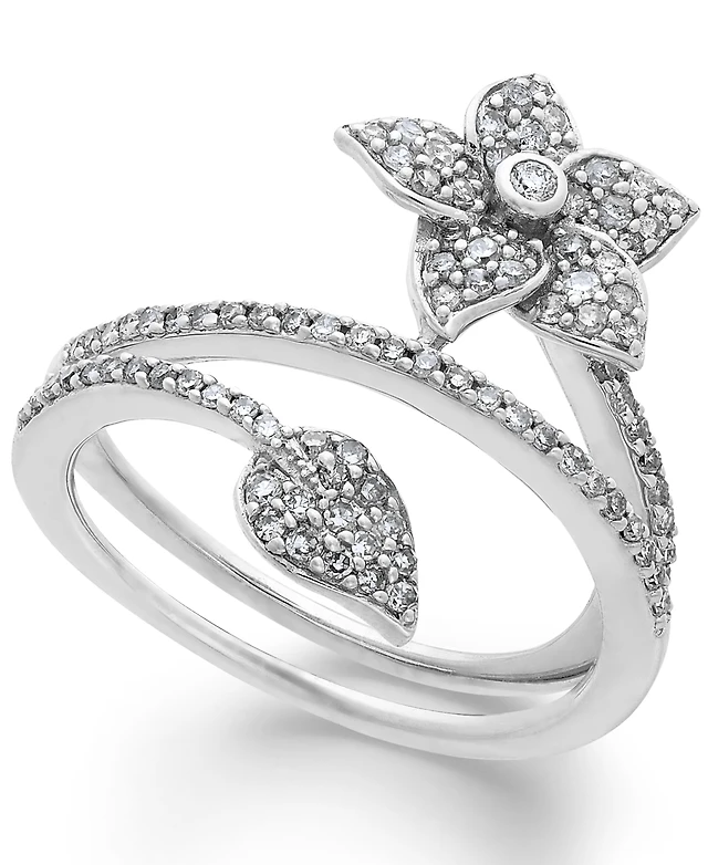 Diamond Wrap-Around Flower Ring in Sterling Silver (1/2 ct. t.w.)