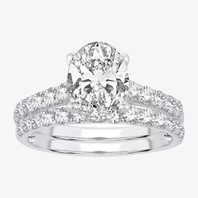 (G-H / Si1-Si2) Womens 2 1/4 CT. T.W. Lab Grown White Diamond 14K Gold Side Stone Engagement Ring