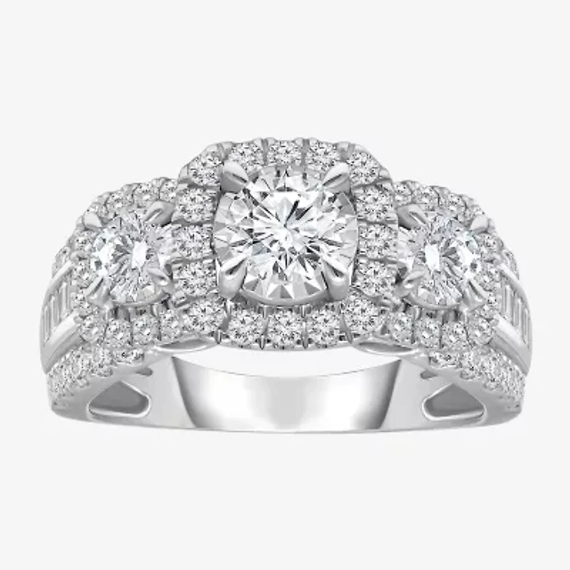 (G / SI1-SI2) Womens 2 1/4 CT. T.W. Lab Grown White Diamond 10K Gold Round 3-Stone Engagement Ring