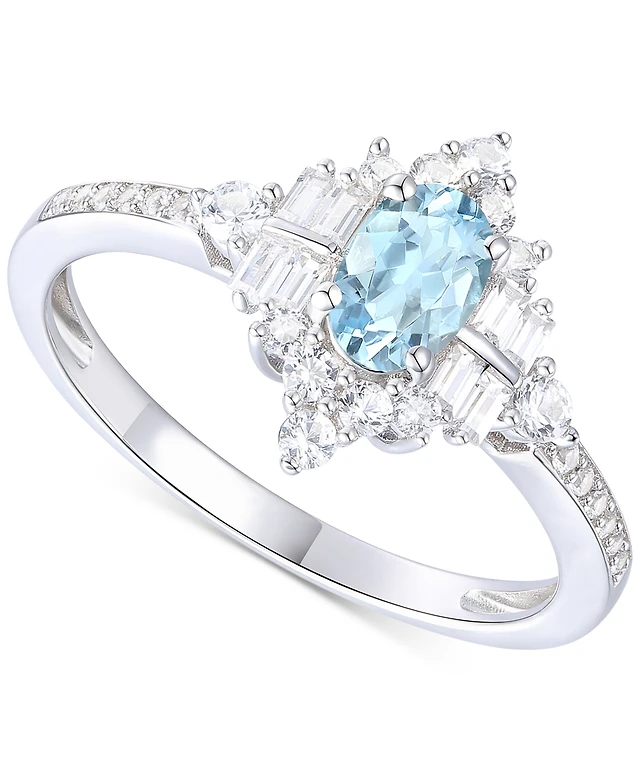 10K White Gold Blue Topaz and Oval Stackable Ring