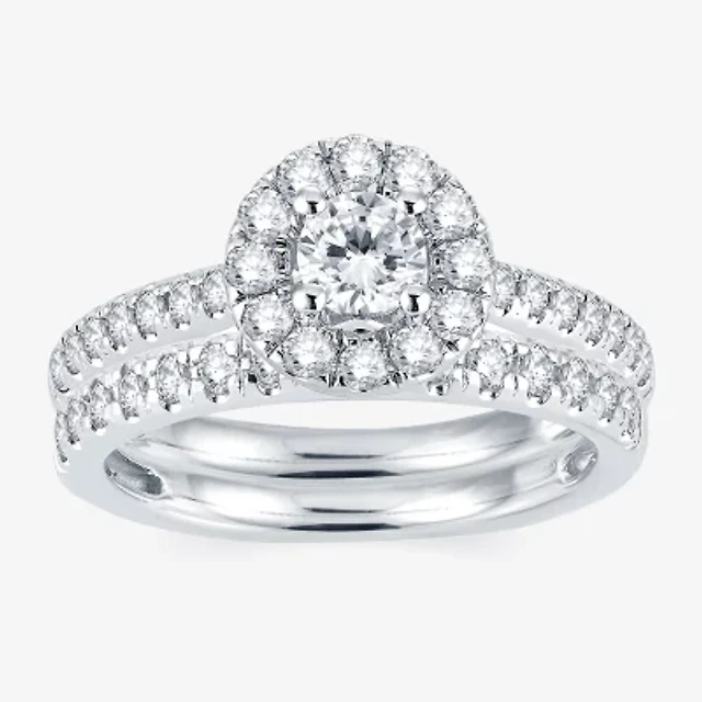 Womens 1 CT. T.W. Lab Grown White Diamond Side Stone Halo Engagement Ring