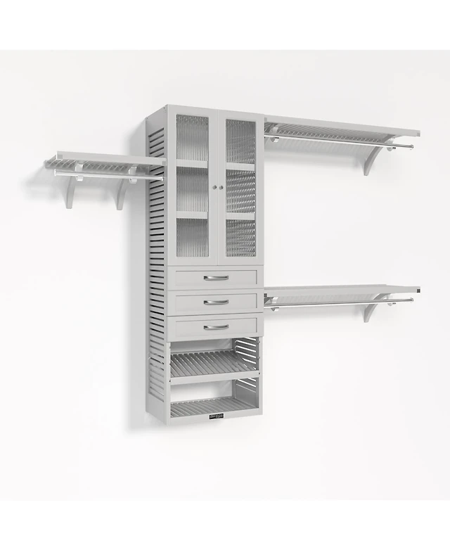 Geek Modular Closet Organizer System with Hanging Rods, Shelves, and Drawers
