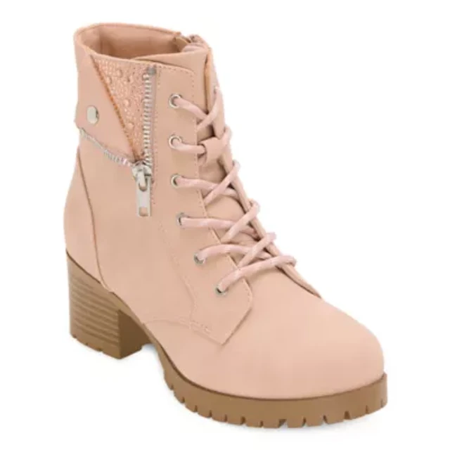 Olivia Miller Little & Big Kid Girls Moto Lug Sole Flat Heel Motorcycle Boots