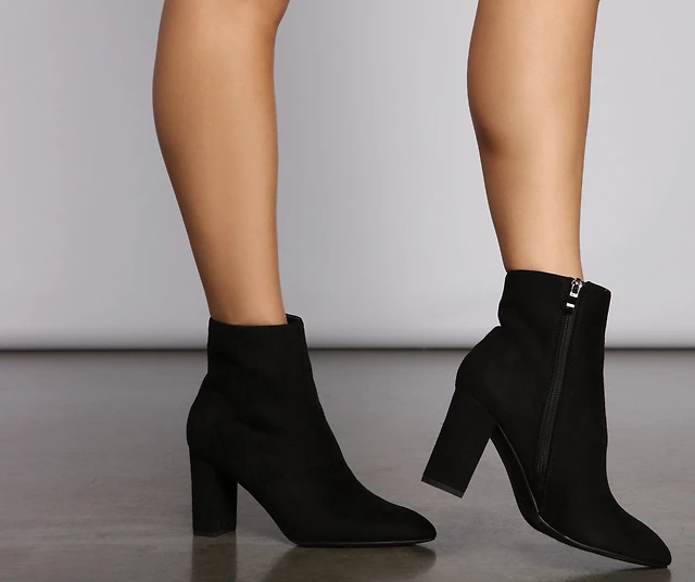 Slay Basics Faux Suede Block Heel Booties