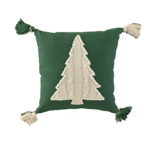 Green Knit Tree 18X18 Poly Filled Holiday Pillow