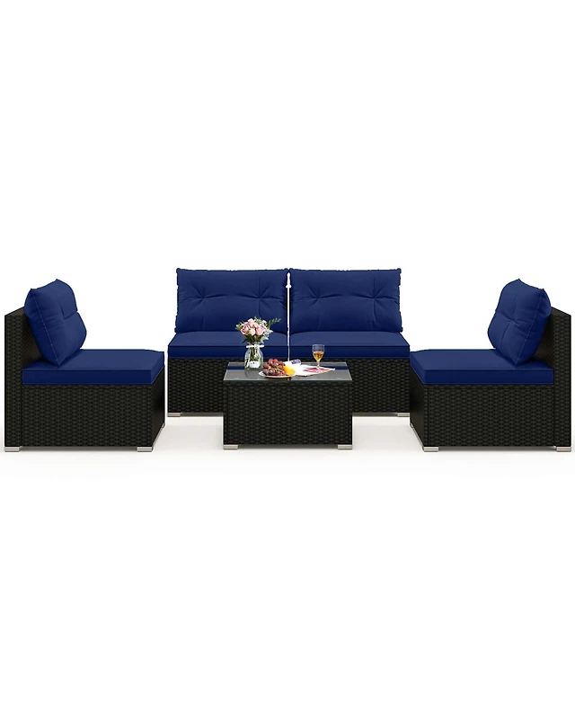 Gymojoy Crescent Swivel Glider All-Weather Pe Wicker Patio Conversation Set with Olefin 6 Inch Thick Cushions/Ottoman (5-Piece