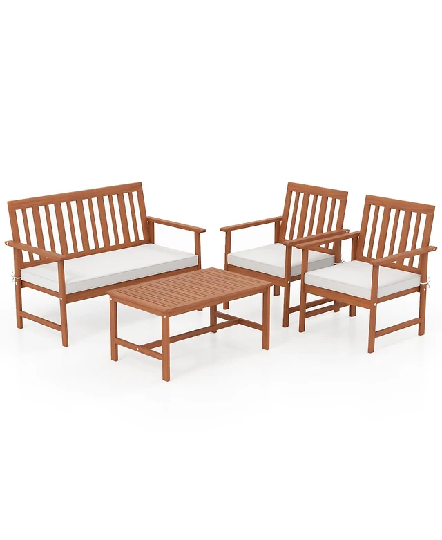 4 Pcs Acacia Wood Patio Conversation Set w/Cushions for Garden