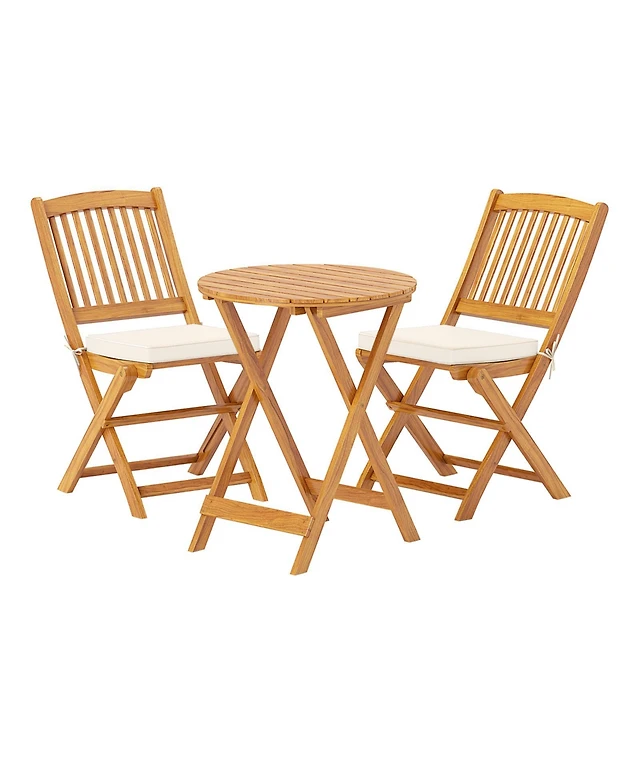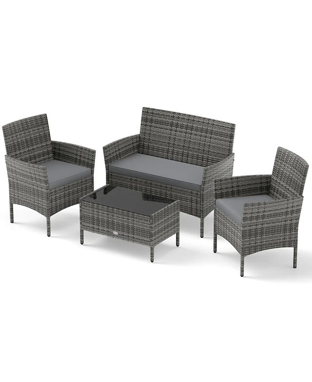 Gymax 3PCS Patio Acacia Wood Pe Wicker Furniture Set w/ Soft Seat & Back Cushions