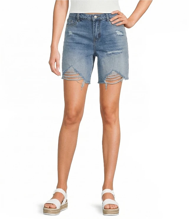 Curvy High-Rise Medium Wash Relaxed Denim Shorts 5"
