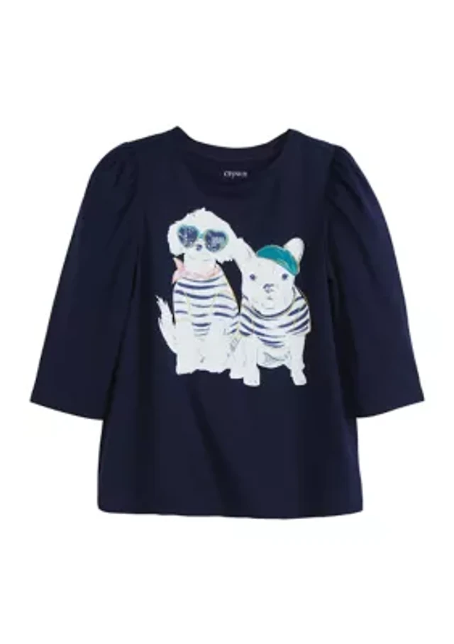Petite 3/4 Sleeve Striped Graphic T-Shirt