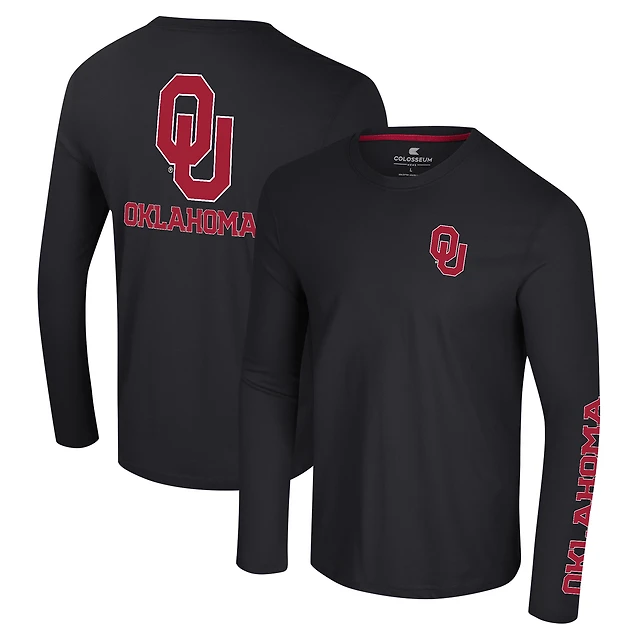 Men's Colosseum Black Oklahoma Sooners Logo Lockup 3-Hit Active Blend Long Sleeve T-Shirt