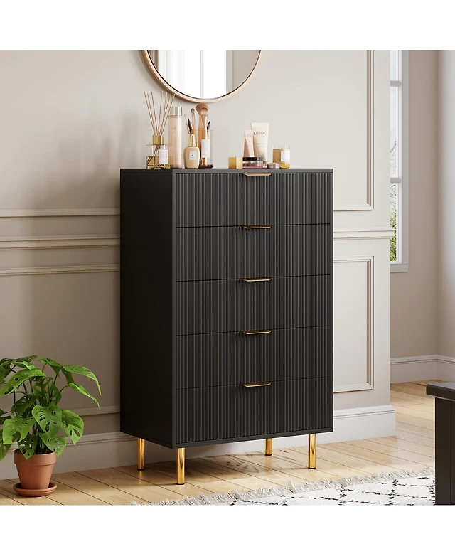 gaomon Dresser for Bedroom, 5 Drawer Dresser with Metal Legs, Modern Dresser Chest Organizer with Wide Storage, Chest of Drawers for Bedroom, Living R