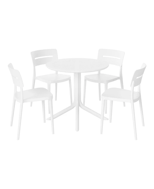 5-Piece Outdoor Resin Round Patio Dining Table Set with Modern Stackable Chairs
