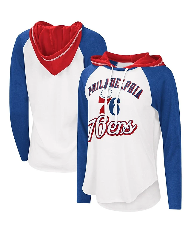 Women's G-iii 4Her by Carl Banks White Philadelphia 76ers Mvp Raglan Hoodie Long Sleeve T-shirt