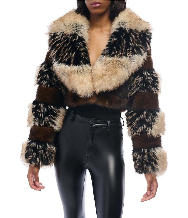 Azalea Wang Inez Striped Faux Fur Collared Filled Statement Jacket