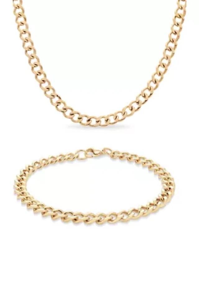 Necklace and Bracelet Gold Ion-Plated Stainless Steel Chain Jewelry Set