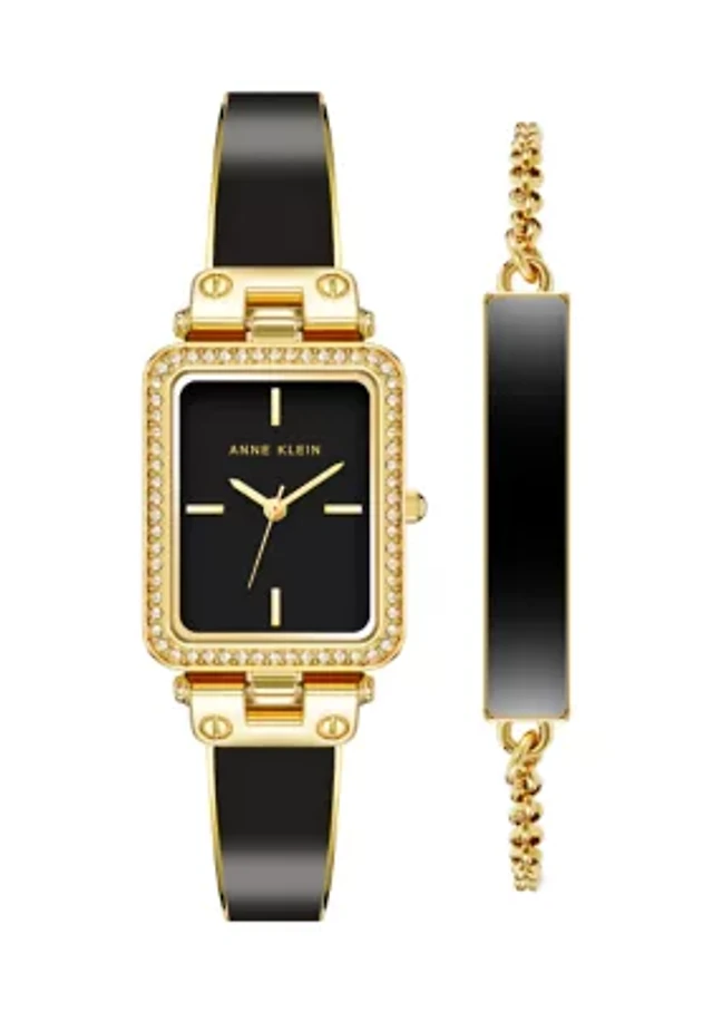 Anne Klein Women's Gold-Tone Alloy Bangle with Crystals Fashion Watch 24mm and Bracelet Set