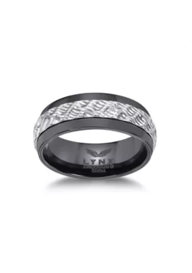 Black Zirconium Ring With Hammered Damascus Steel Inlay