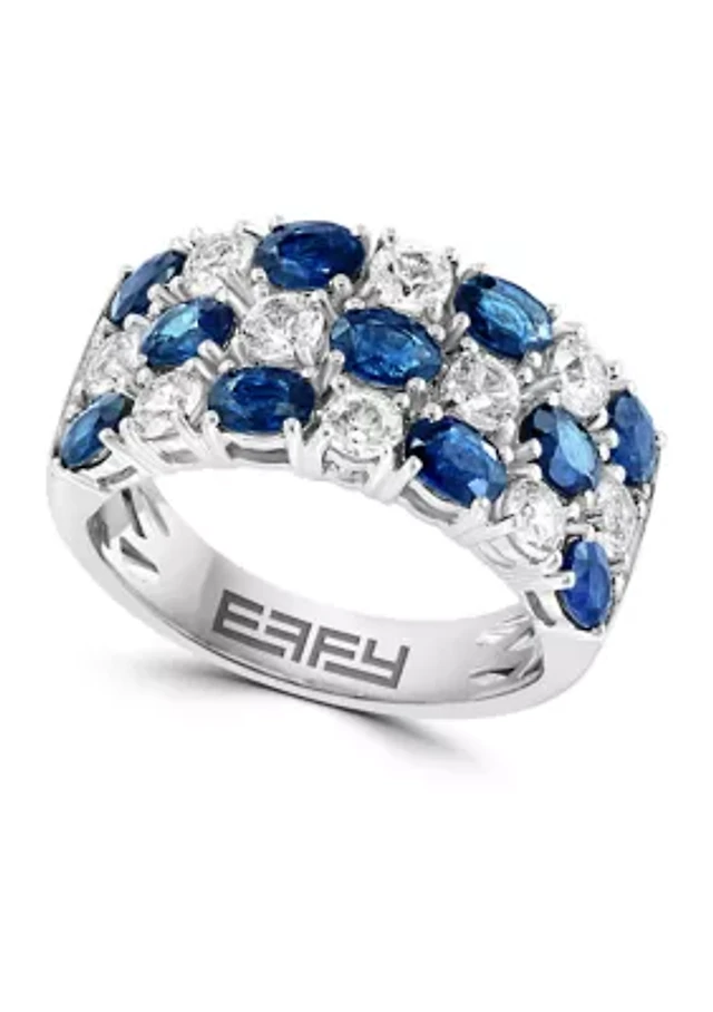 Diamond and Natural Sapphire Ring in 14K White Gold