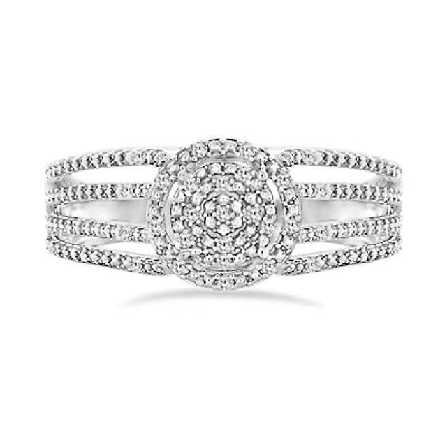 Cubic Zirconia Cluster Open Shank Ring in Sterling Silver - Size 6
