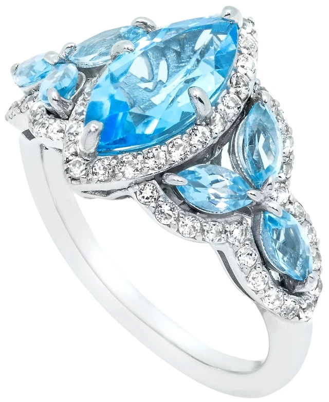 Blue and White Crystal Ring in White Rhodium Bronze - Size 7