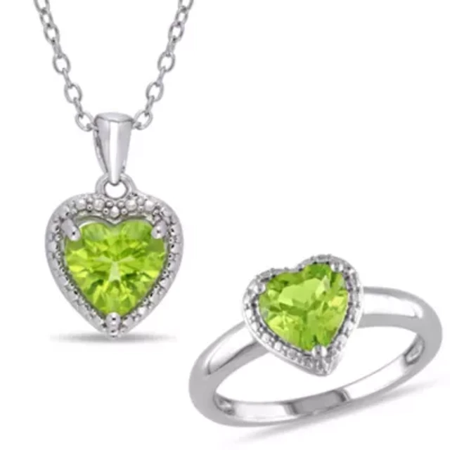 2-Pc Set of Peridot Heart Ring and Pendant with Chain Sterling Silver