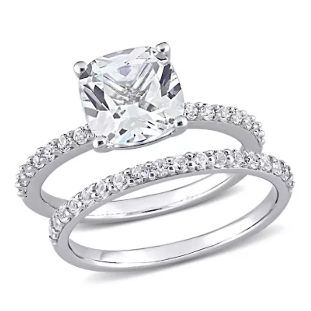 Lab Created Cushion Cut White Sapphire Engagement Ring and Matching Eternity 2pc Set 10K Gold