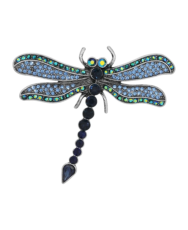 2028 Silver-Tone Ab Glass Stone Dragonfly Pin