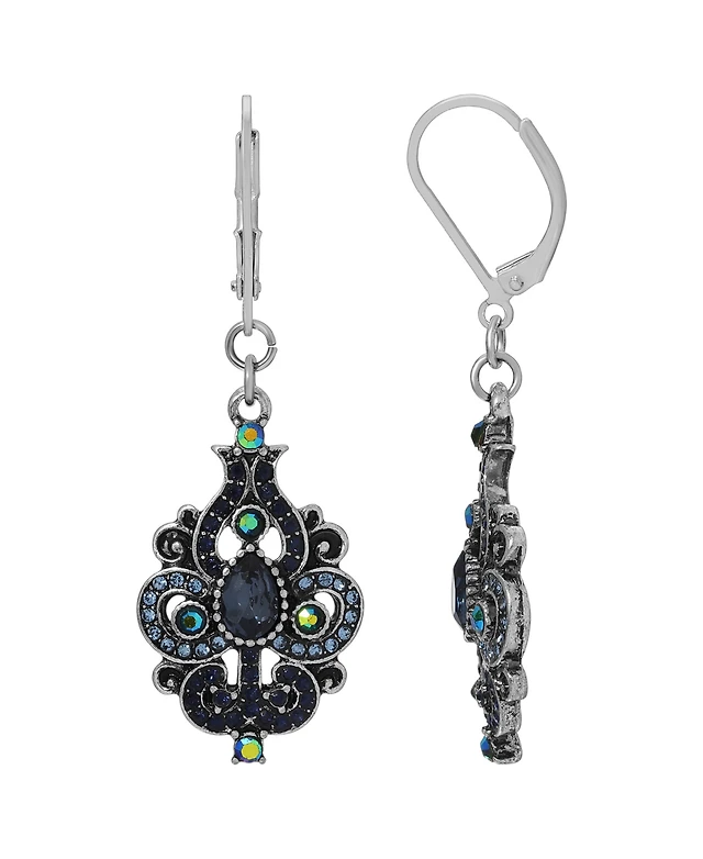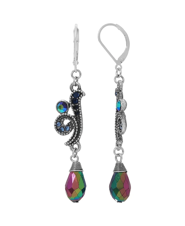 2028 Silver-Tone Blue Ab Glass Drop Earrings
