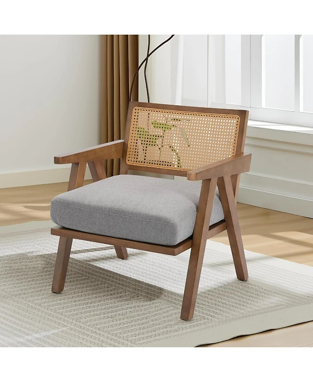 Sugift Modern Accent Chair with Wood Armrests and Removable Back