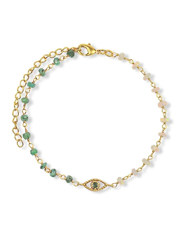Gold Green Diamante Cup Chain & Festive Charm Layered Bracelet