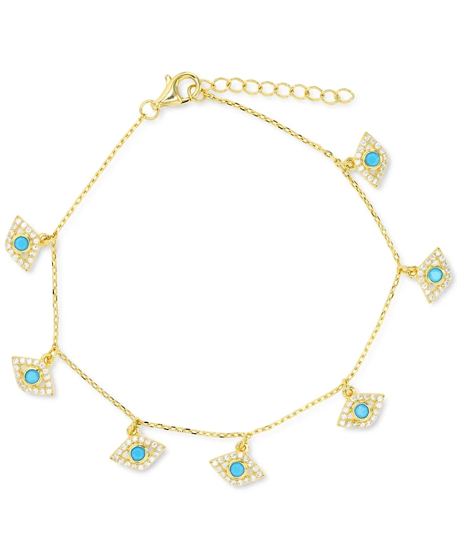 Gold Cubic Zirconia Tennis & Cord Light Blue Flower Charm Bracelets 3-Pack