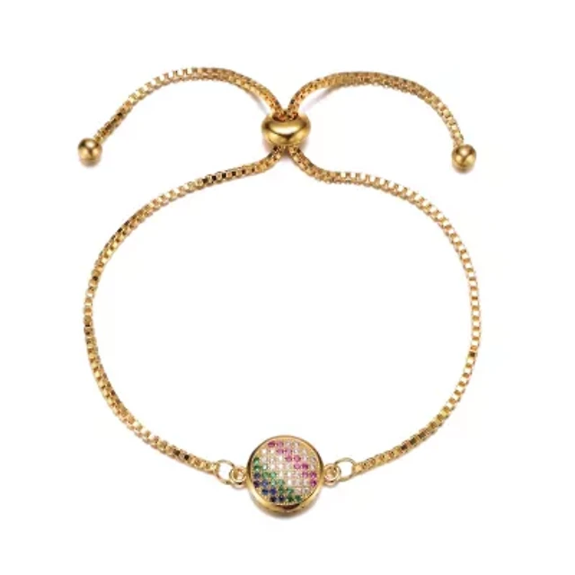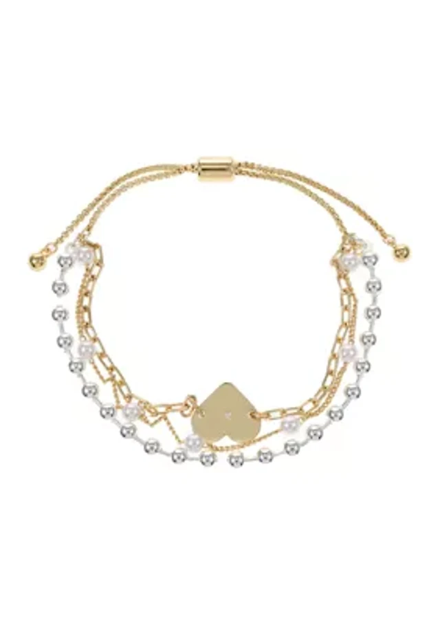Footnotes Mighty Womens Cubic Zirconia Heart Round Bolo Bracelet